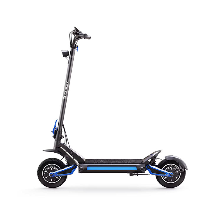 Skuter elektrik OKULEY R10 dilengkapi dengan tayar pneumatik 10 inci, yang memberikan cengkaman yang sangat baik dan keselesaan menunggang. Reka bentuknya yang unik membolehkan ia dibongkar dengan cepat. Mudah dijaga. Penyerap hentak spring berkembar boleh mengurangkan kesan yang disebabkan oleh jalan yang kasar. Selain itu, ia juga menyediakan pilihan brek cakera dan brek hidraulik untuk keselamatan yang lebih baik.